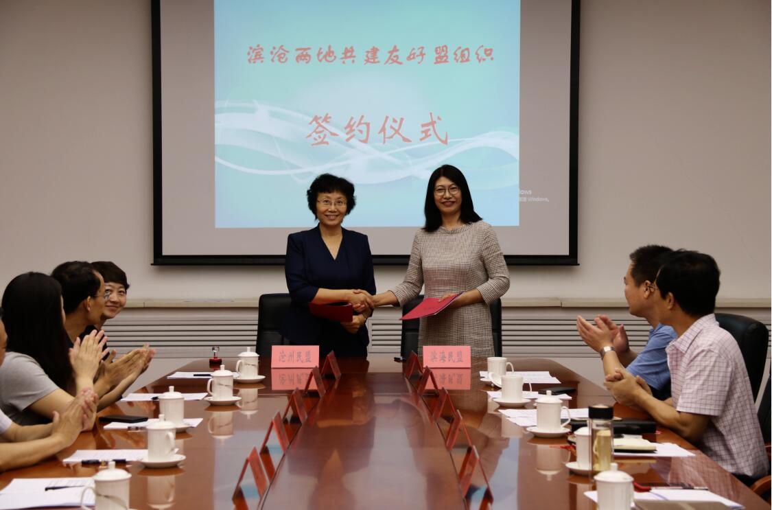 王荣主委在签约仪式上表示:希望沧州与滨海新区民盟能够多领域、多层次、多形式地开展合作,共建活动平台、交流盟务经验、分享工作资源,互通信息,整合资源、汇聚力量,优势互补、协同合作,联手打造更多的优秀品牌工作,共同开拓社会服务工作新局面,开创议政调研新成果,提升参政议政水平,共同助推两地盟务工作的创新发展,为京津冀协同发展贡献力量。